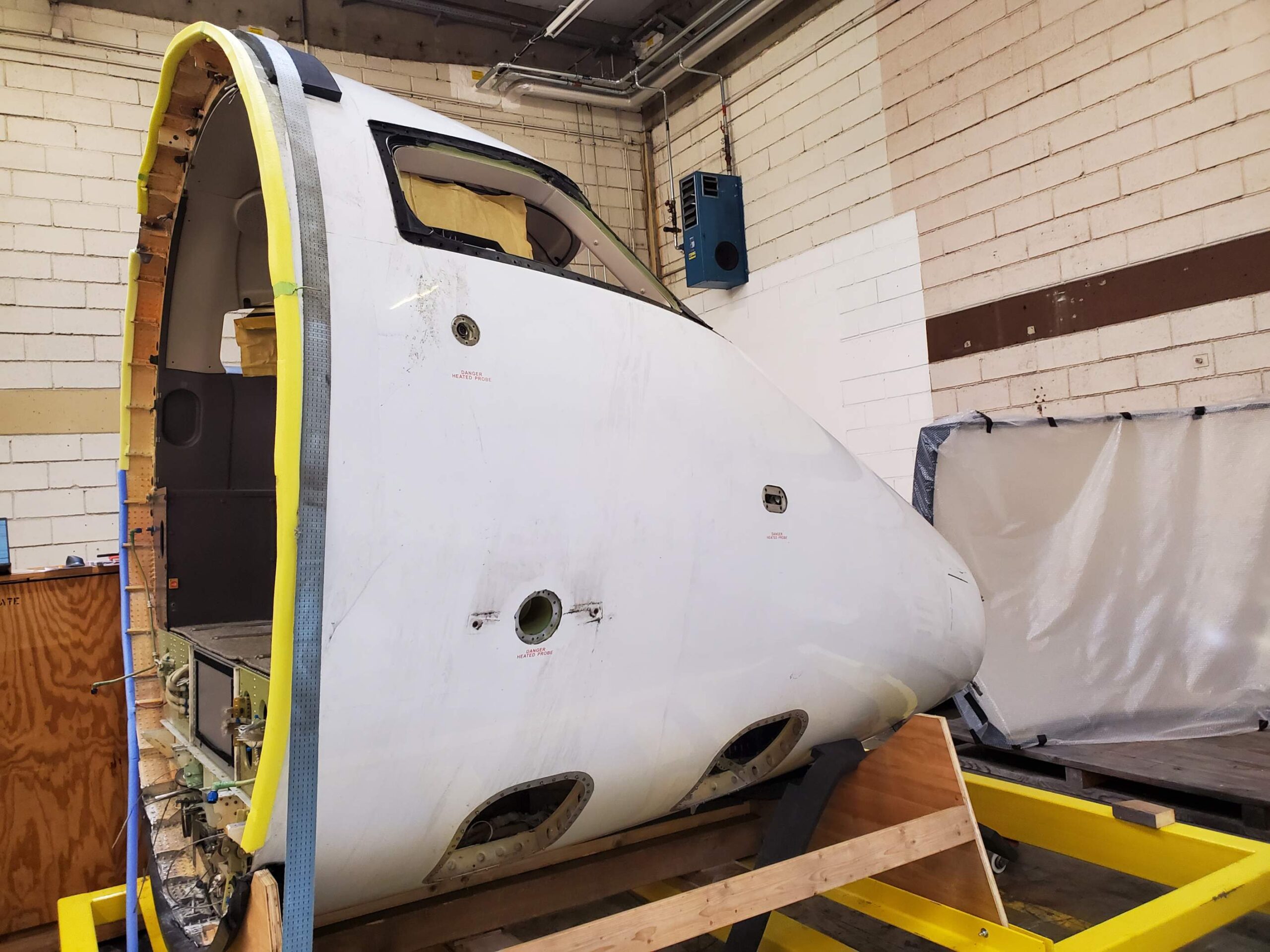 Subsequently, the cockpit was fully dismantled and all components were removed, leaving only the outer shell and structural framework.