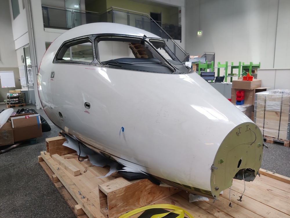 The nose section of this Challenger 300 was still in great shape, and since the cockpit is the same size as the successor Challenger 350, AXIS repurposed it as a simulator cockpit for that aircraft.