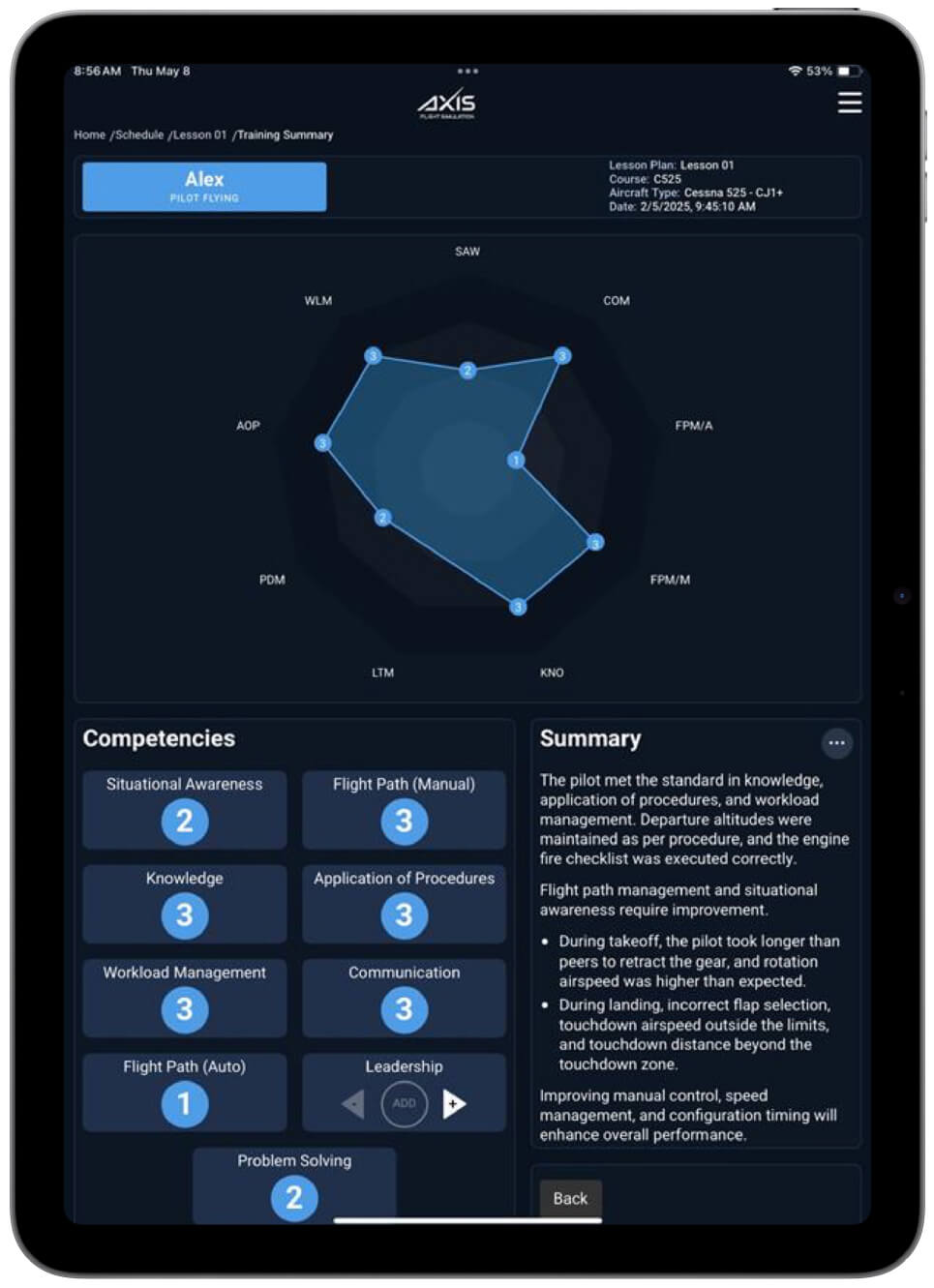 - Einblicke in die Pilotenleistung über mehrere Kompetenzen hinweg gewinnen